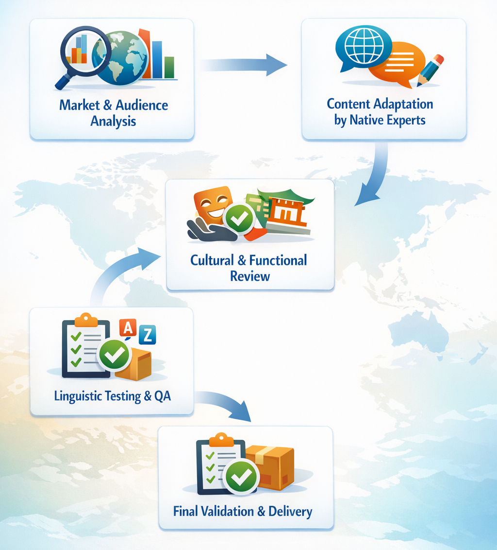 Final review and seamless delivery of fully localized content.